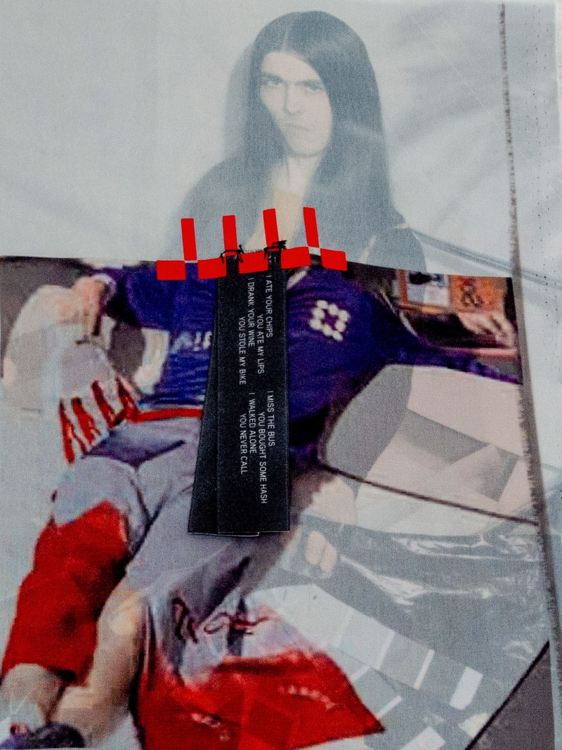The endless source of fast fashion garments that circulate on flea markets is comparable to the amount of low-resolution images that circulate the internet. Jpegs (and garments) are used, compressed, and altered: through sharing their quality deteriorates and they lose their original value. The collection M&M is also presented in a polyester fabric lookbook — part graphic design, part fashion, part soft sculpture, the publication has the feeling of a magazine, but has a fluid materiality. It has questionable functionality, much like the past season clothes left to languish at the back of our closets.